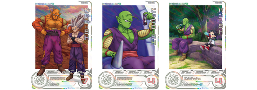 Aus dem Werbeanime können Sie eine Goku-Karte in die Hände bekommen, die den Kampf des Saiyajin-Helden gegen Goku nachbildet: Xeno! Es gibt auch eine Aeos-Karte mit dem CAA „Change Switch“, die Sie gegen den neu befreundeten Supreme Kai of Time eintauschen können! Zu guter Letzt gibt es noch Gamma 2: SH- und Gohan: SH-Karten, die miteinander verbunden werden, um das Design des limitierten Dragon Ball Super: SUPER HERO Blu-ray -Pakets nachzubilden!
