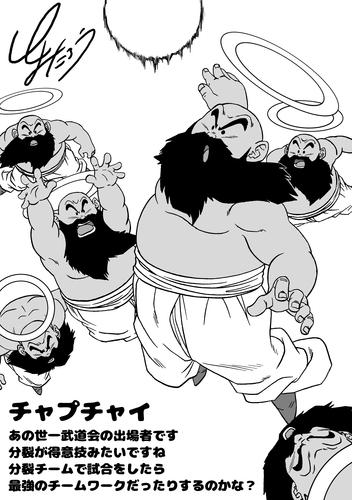 Chapuchai erschien in einer reinen Anime-Episode von Dragon Ball Z als Kämpfer im Another World Budokai! Er trat der Konkurrenz aus der East Galaxy bei und kämpfte energisch mit seiner speziellen Technik, die es ihm ermöglicht, sich in mehrere identische Kämpfer aufzuteilen!