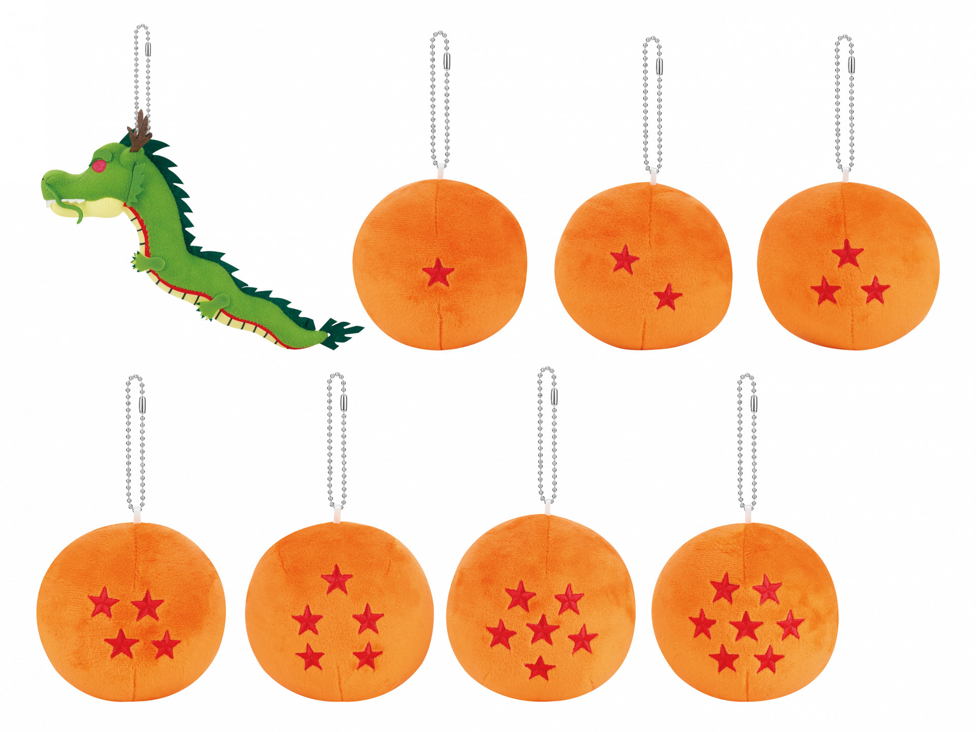 Sie möchten die gesamte Aufstellung sammeln, vom umwerfenden Shenron bis zu allen sieben Dragonballs! Diese Schlüsselanhänger sind nur in Vergnügungsparks erhältlich, also verpassen Sie nicht Ihre Chance!
