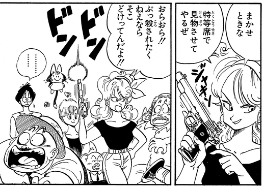 Und obwohl es nicht in der Hauptgeschichte vorkommt, kann man sie auch in einem speziellen Stück für Weekly Shonen Jumps „Put the Old Year Behind You! Jump Characters Face Off at Short GAG Land“ auf der wütenden Suche nach Tenshinhan sehen.