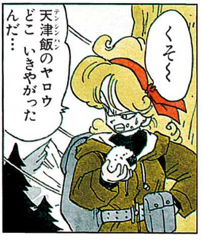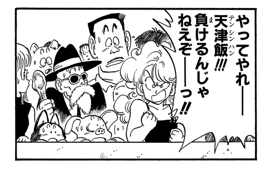 Sie feuert Tenshinhan erneut während seines Kampfes gegen Taopaipai an und sagt ihm: „Komm schon, erledige ihn, Tenshinhan!!! Wage es nicht, zu verlieren--!!“