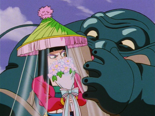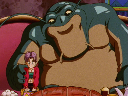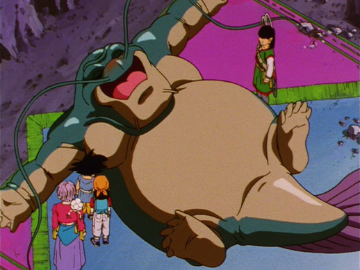 Ohne sein Wissen springt Trunks jedoch für Leine ein und verkleidet sich in einem Brautkleid. Zunama ist so aufgeregt, dass er den Wechsel nicht bemerkt und den Halb-Saiyajin zu seinem Haus auf dem Mt. Gelvo entführt.