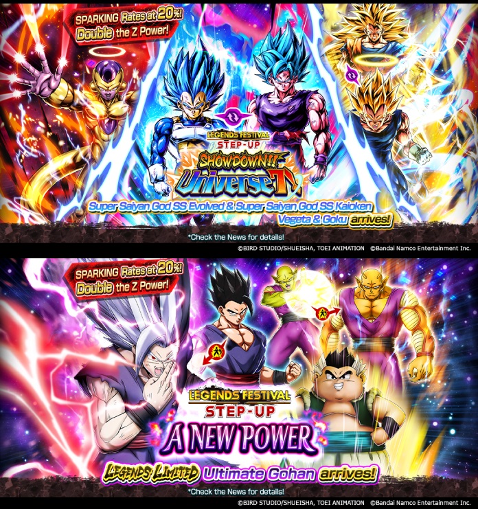Zuerst kommt „LEGENDS FESTIVAL STEP-UP – SHOWDOWN!! UNIVERSE 7 –“, wo LEGENDS LIMITED Super Saiyan God SS Evolved Vegeta und Super Saiyan God SS Kaioken Goku (DBL65-01S) als neuer Tag-Charakter erscheinen!
