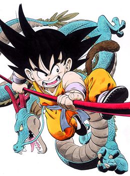 Goku, ein unschuldiges wildes Kind mit Affenschwanz, wurde vom Kampfkünstler Son Gohan im Goku- Training gefunden und aufgezogen.