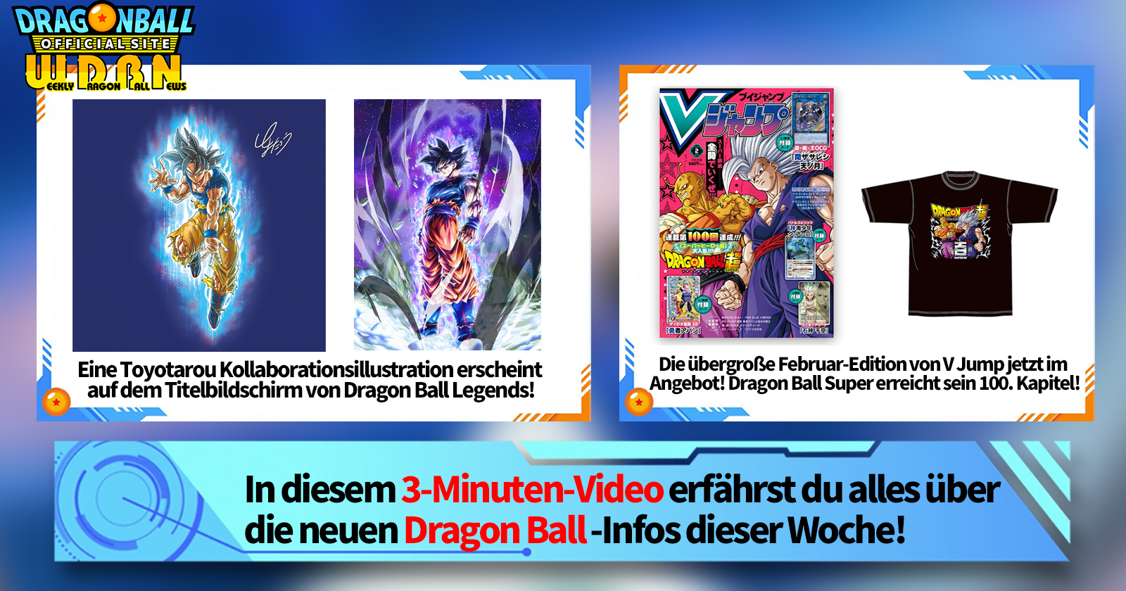 „Weekly Dragon Ball News“ ist eine Videoserie, die jeden Montag (JST) aktualisiert wird, um Ihnen die neuesten Nachrichten aus der Welt von Dragon Ball zu liefern!