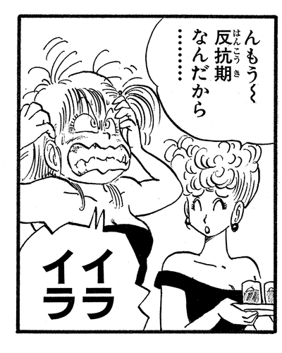 Lächelnd sagt sie zu Bulma, jetzt verärgert: „Musst du so rebellisch sein, Liebes?“