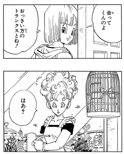 Während der Cell Saga sieht Bulmas Mutter ihre Tochter seltsam an, als diese vorbeikam und sie bat, auf sie aufzupassen, denn, wie Bulma erklärte: „Ich werde mein Baby ganz erwachsen sehen!“