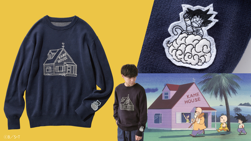 Dieser Strickpullover zeigt auf der Vorderseite eine Illustration von Kame House . Kame House wurde mit erstaunlicher Liebe zum Detail mithilfe einer Jacquard-Stricktechnik nachgebildet. Berühren Sie mit dem linken Ärmel die Abbildung und der Goku-Aufnäher sieht aus, als würde er nach Hause fliegen! Dieses einfache, aber verspielte Design ist eine perfekte Möglichkeit für Fans jeden Alters, ihre Liebe zu Dragon Ball zu zeigen.