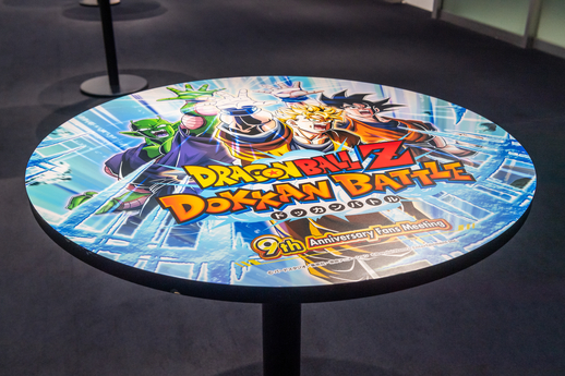 In der Mitte der Lobby befanden sich eine Reihe runder Tische, von denen jeder ein spezielles Design zum Thema „Dokkan Battle“ aufwies! Die Teilnehmer konnten damit Spiele spielen, an Umfragen teilnehmen und sich mit anderen Fans treffen.