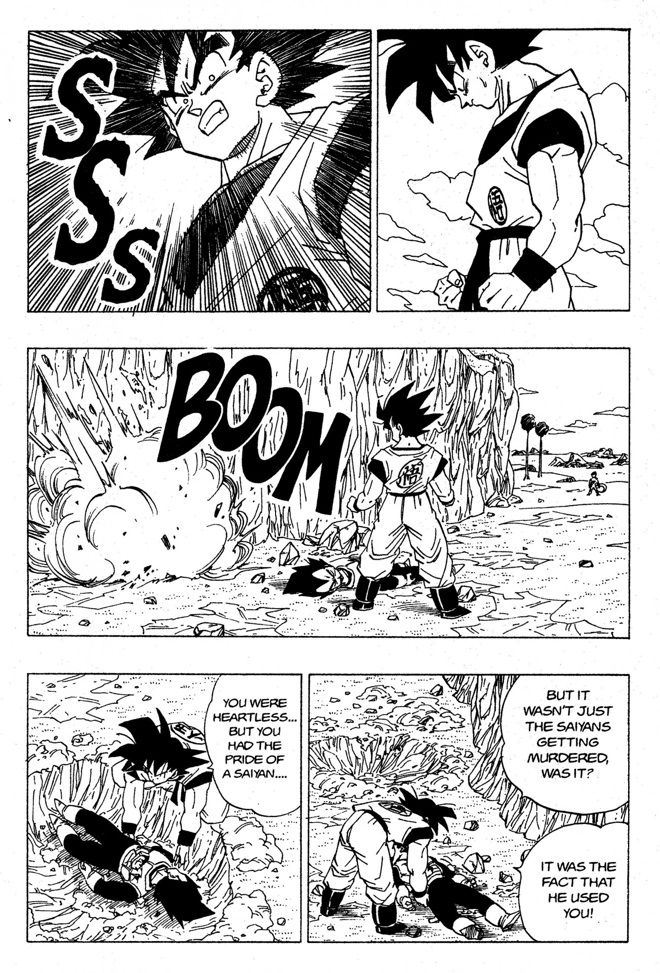 Fumita:Außerdem gibt es noch etwas, das Goku nur einmal gemacht hat. Als er Vegeta beerdigte, schaute er auf den Boden und dann, puh! Da ist ein großes Loch.