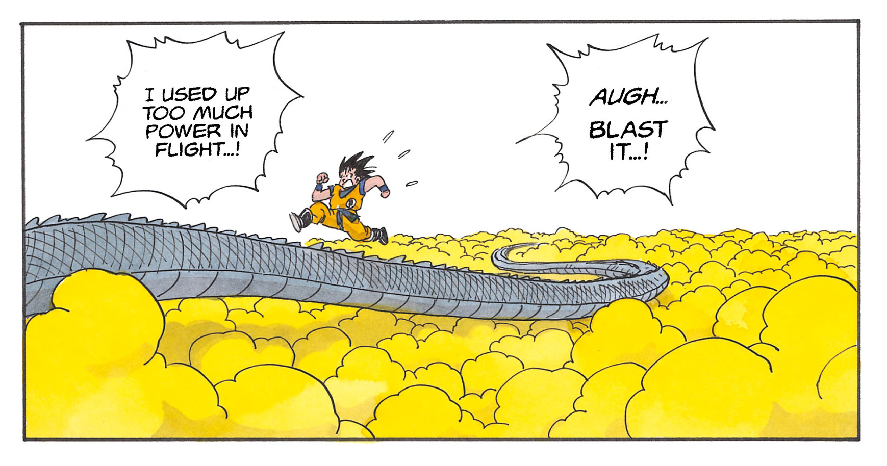 Fumita: Apropos: Als Goku Serpent Road in Angriff nahm, reiste er zunächst mit Buku-jutsu (Schwebetechnik), aber nach einer Weile beginnt er zu rennen und sagt: „Ich habe im Flug zu viel Kraft verbraucht ...!“ Rechts? Ich erinnere mich, als ich das sah, dachte ich: „Meine Güte, Fliegen muss anstrengend sein.“