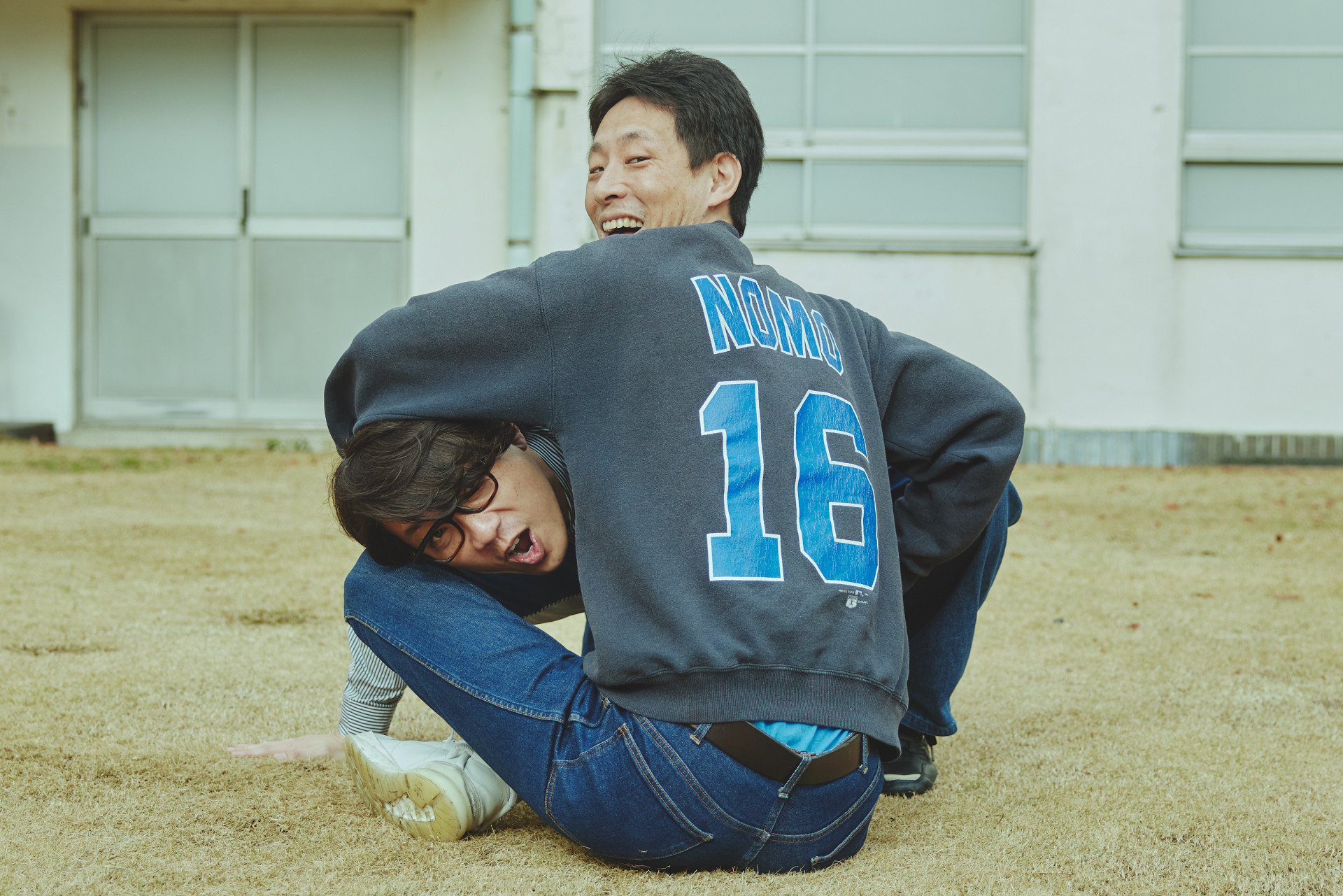 Nedate und Fujita versuchen, die berühmte Dragon Ball Z -Pose aus der kommerziellen Stoßstange nachzubilden
