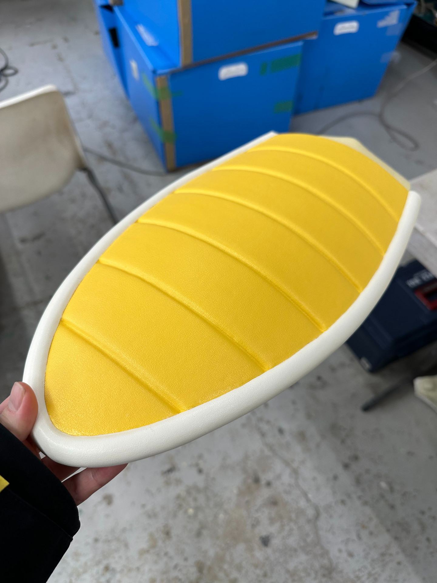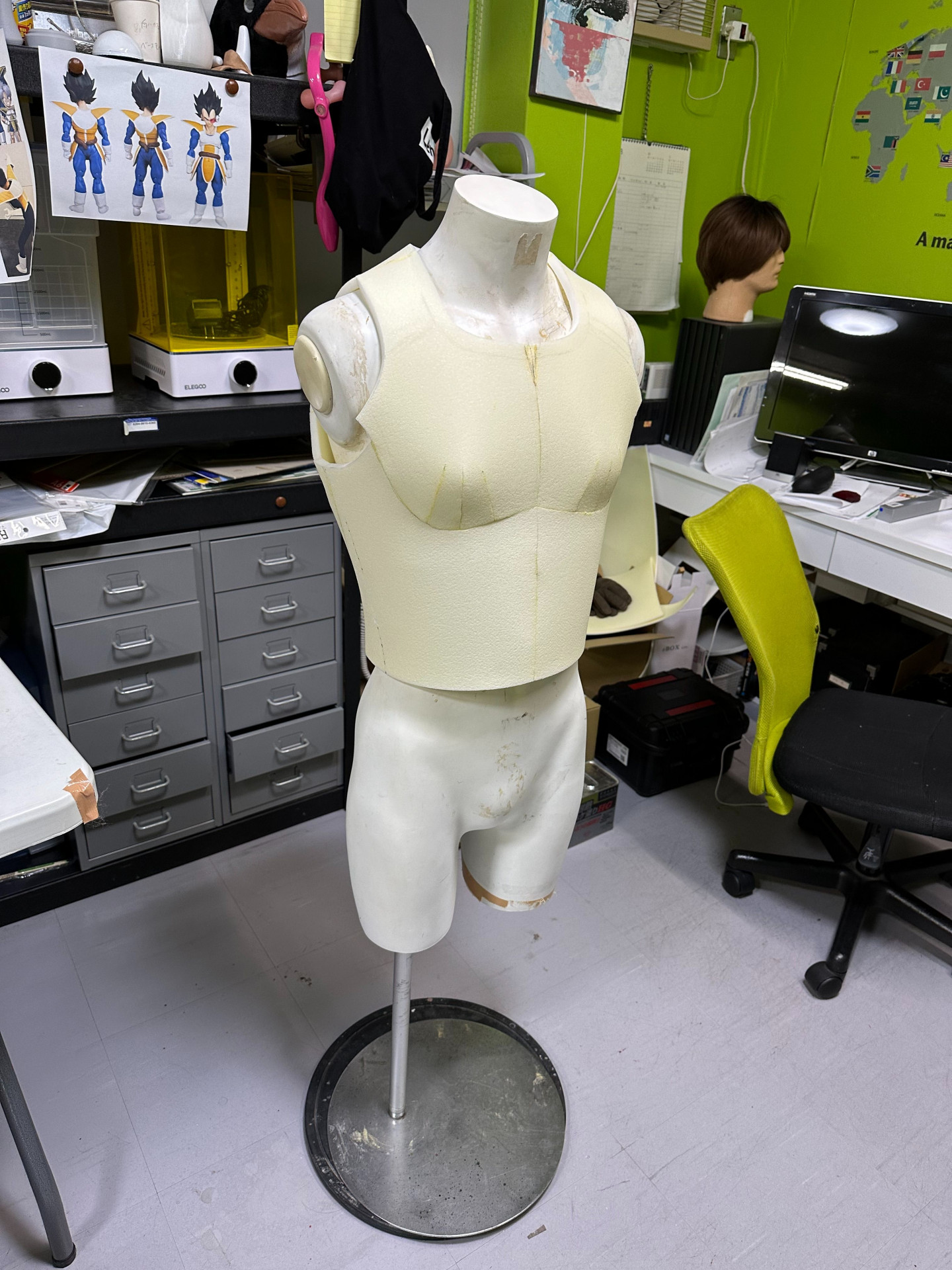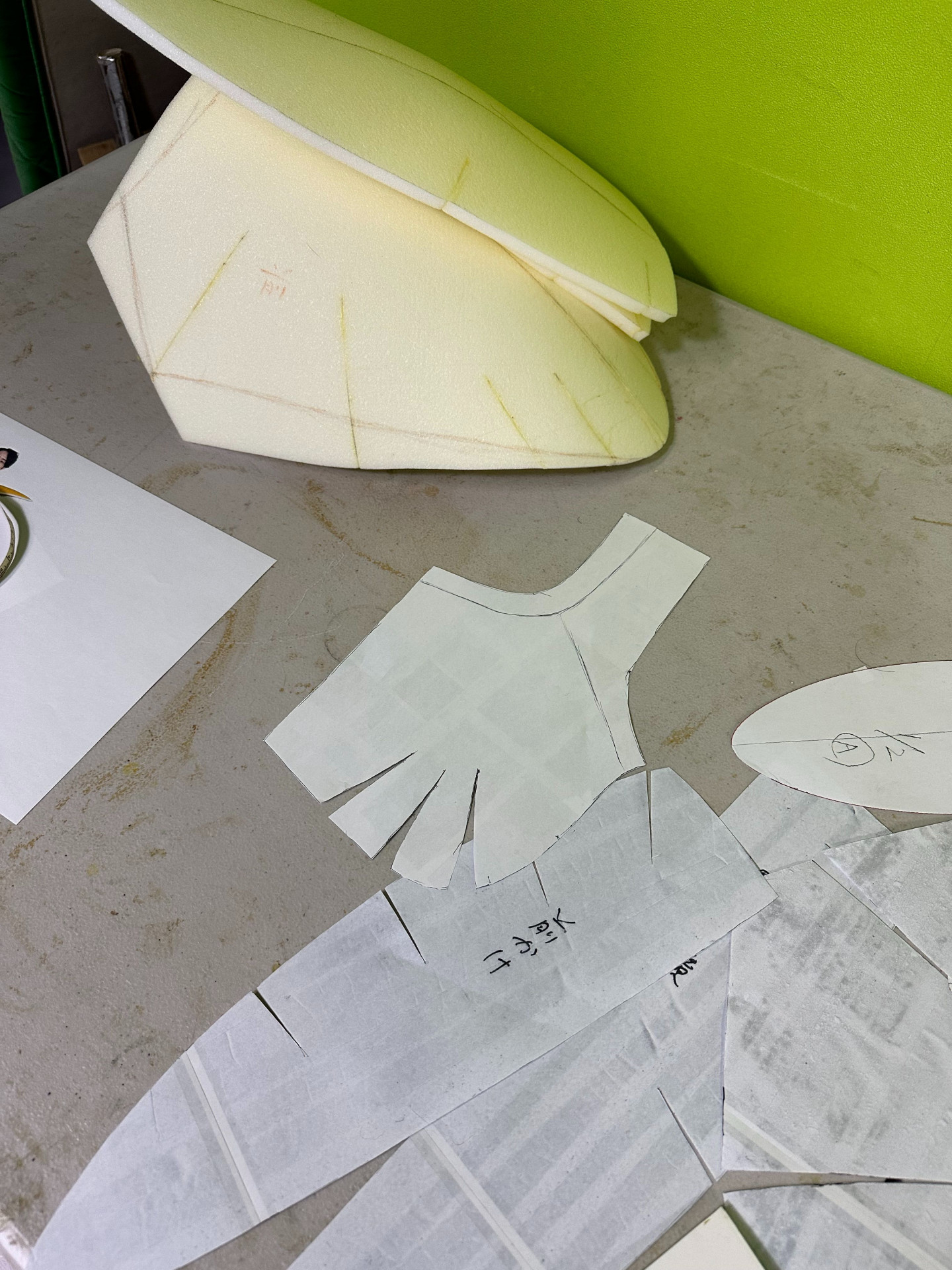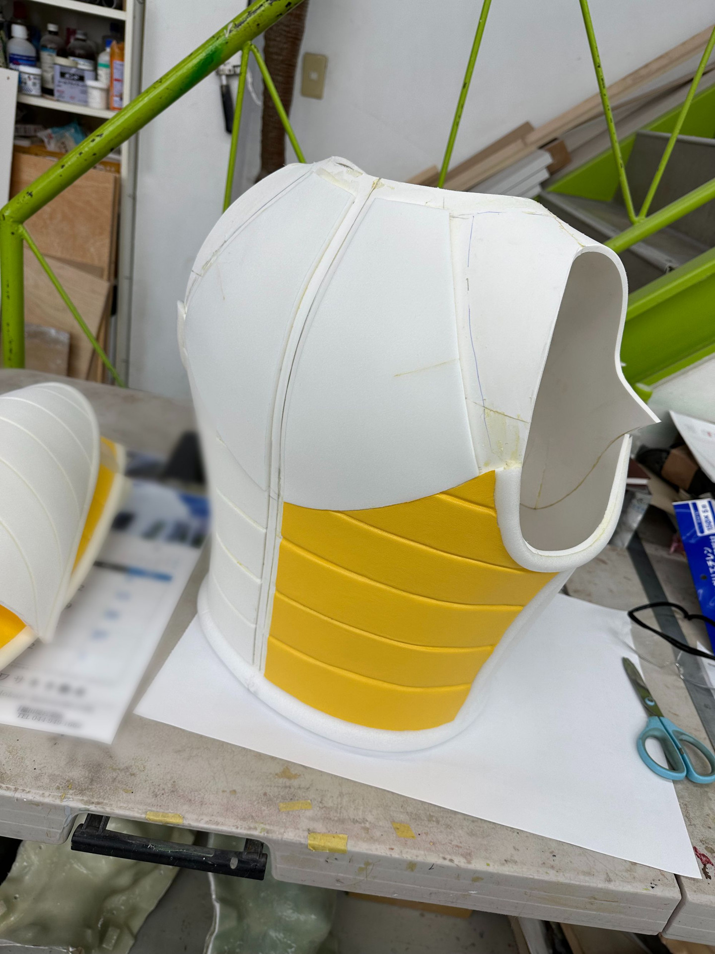 Als nächstes machten wir uns an die Herstellung der verschiedenen Teile des Kampfanzugs! Dafür wurden Hartschwamm und andere Materialien verwendet, auf die wir dann Vinylleder aufbrachten.