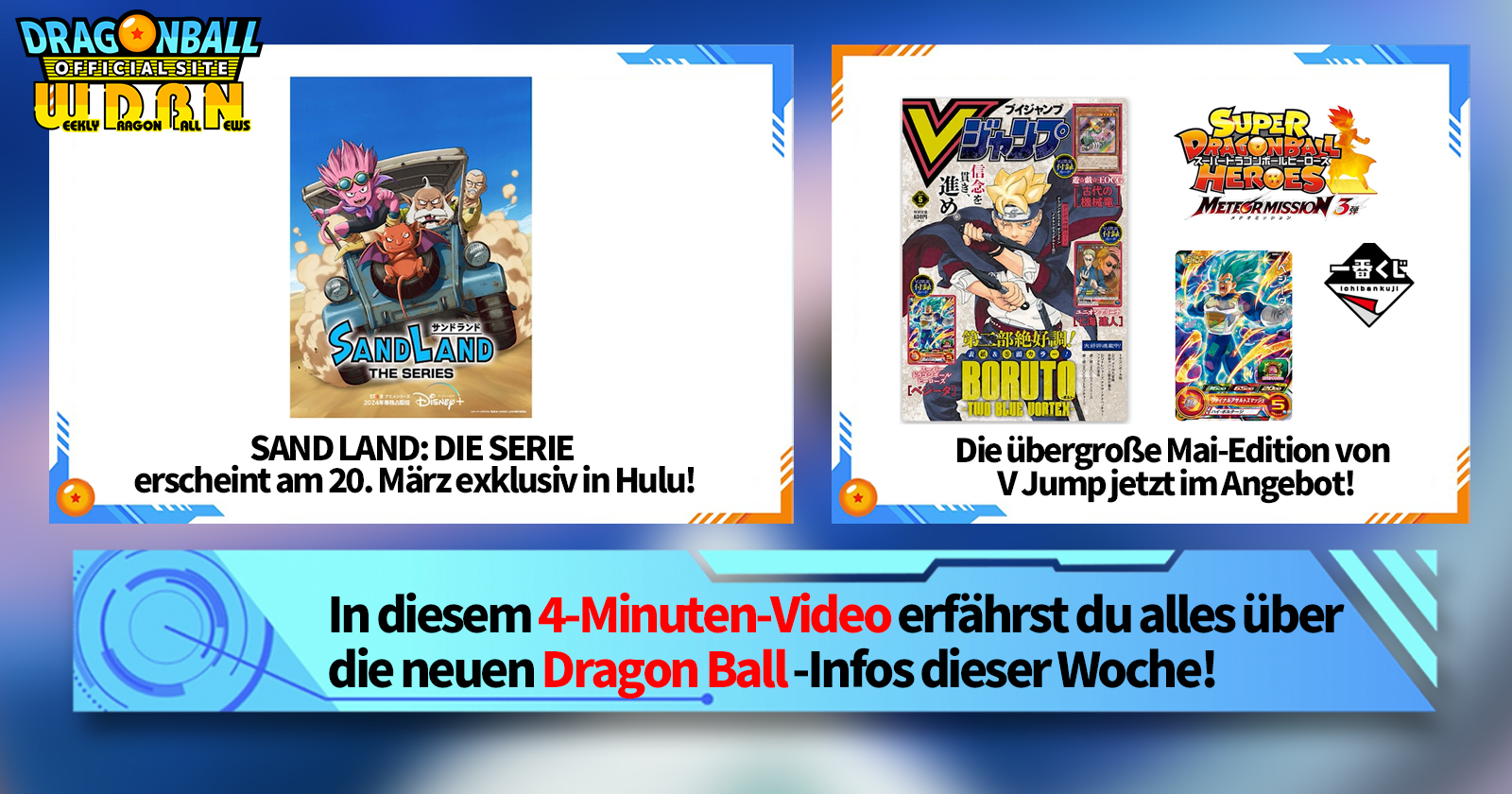 „Weekly Dragon Ball News“ ist eine Videoserie, die jeden Montag (JST) aktualisiert wird, um Ihnen die neuesten Nachrichten aus der Welt von Dragon Ball zu liefern! Begleiten Sie V Jump Redakteur Victory Uchida, wenn er über die heißesten Informationen der vergangenen Woche sowie über aktuelle Updates wie neue Produktinformationen und Website-Neuigkeiten für die kommende Woche berichtet!