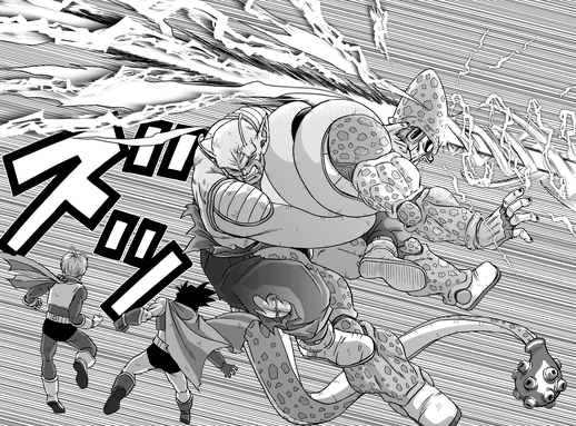 Angesichts der extremen Haltbarkeit von Cell Max beschließt Gamma 2 , einen Alles-oder-Nichts-Angriff zu starten. Doch obwohl Gamma 2 ernsthaften Schaden anrichten kann, bleibt Cell Max ungeschlagen.