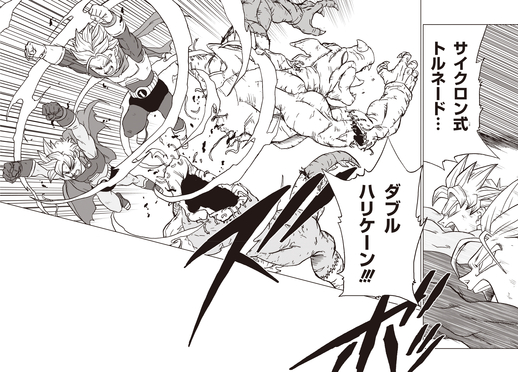 Trunks und Goten verwandeln sich in die Helden der Gerechtigkeit, Saiyaman X-1 und X-2, um gegen den tobenden Cell Max anzutreten. Als die Gammas das sehen, schließen sie sich dem Kampf an! Und Goten und Trunks versuchen Fusion! Aber keine ihrer Bemühungen hat irgendeine Auswirkung auf Cell Max und diese Wendung der Ereignisse zwingt Gohan und die anderen, sich dem Kampf anzuschließen.