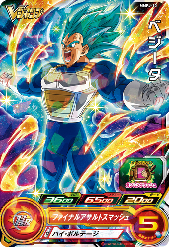 Diese Ausgabe von V Jump enthält eine Vegeta Karte mit der Fähigkeit „Hochspannung“ für Super Dragon Ball Heroes! Reduziere den Schaden, den dein Team erleidet, um die Hälfte, wenn diese Karte zum Angreifer wird!