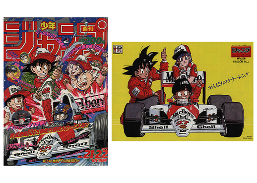 Auf den Titelseiten von Shonen Jump begann sich die Bühne für den letztendlichen Kampf zwischen Goku und Frieza zu bereiten, und inmitten dieser aufregenden Atmosphäre erfasste auch ein Formel-1-Rennboom die Welt! Weekly Shonen Jump beteiligte sich sogar als Sponsor am F1-Grand-Prix von Japan, was zu der Traumkollaboration führte, die Sie hier sehen! Schauen Sie sich Goku und Co. im F1-Stil auf dem Cover und Poster an!