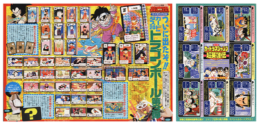 Zu dieser Zeit explodierte die Popularität von Dragon Ball Carddass wirklich! Es gab sogar einen herausziehbaren Bonus mit dem Titel „Carddass Jump Super Heroes Illustration“, der jede Menge spannende Informationen über das dritte Set in leuchtenden Farben lieferte.