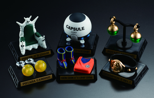Die Aufstellung umfasst dieses Mal die folgenden 6 Kultgegenstände: Gokus Trainingsuniform und Schuhe, ein Kapsel Spaceship, Mr. Satans Champion-Gürtel, den Sitz des Großen Dämonenkönigs Piccolo, Potara-Ohrringe (gelb) und Potara-Ohrringe (grün)!