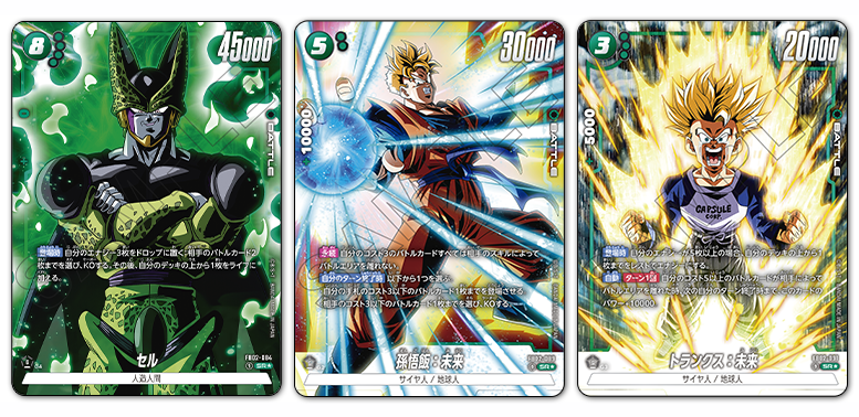 Die grünen SR Alt-Art-Karten sind „Cell“, „Son Gohan: Future“ und „Trunks: Future“.