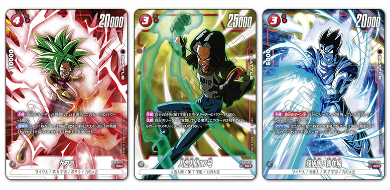 Die roten SR Alt-Art-Karten sind „Kefla“, „Android 17“ und „Son Gohan: Adolescence“.