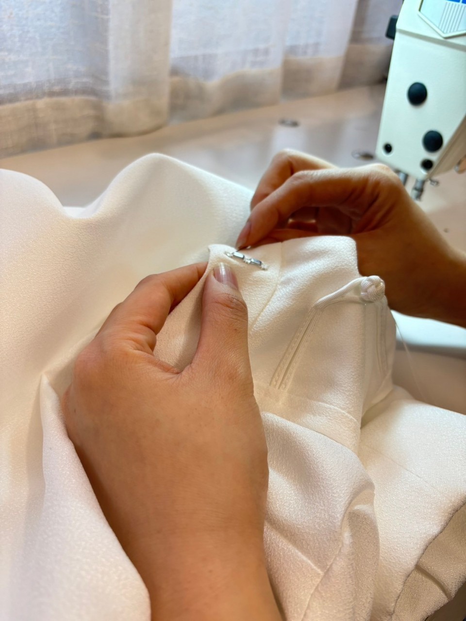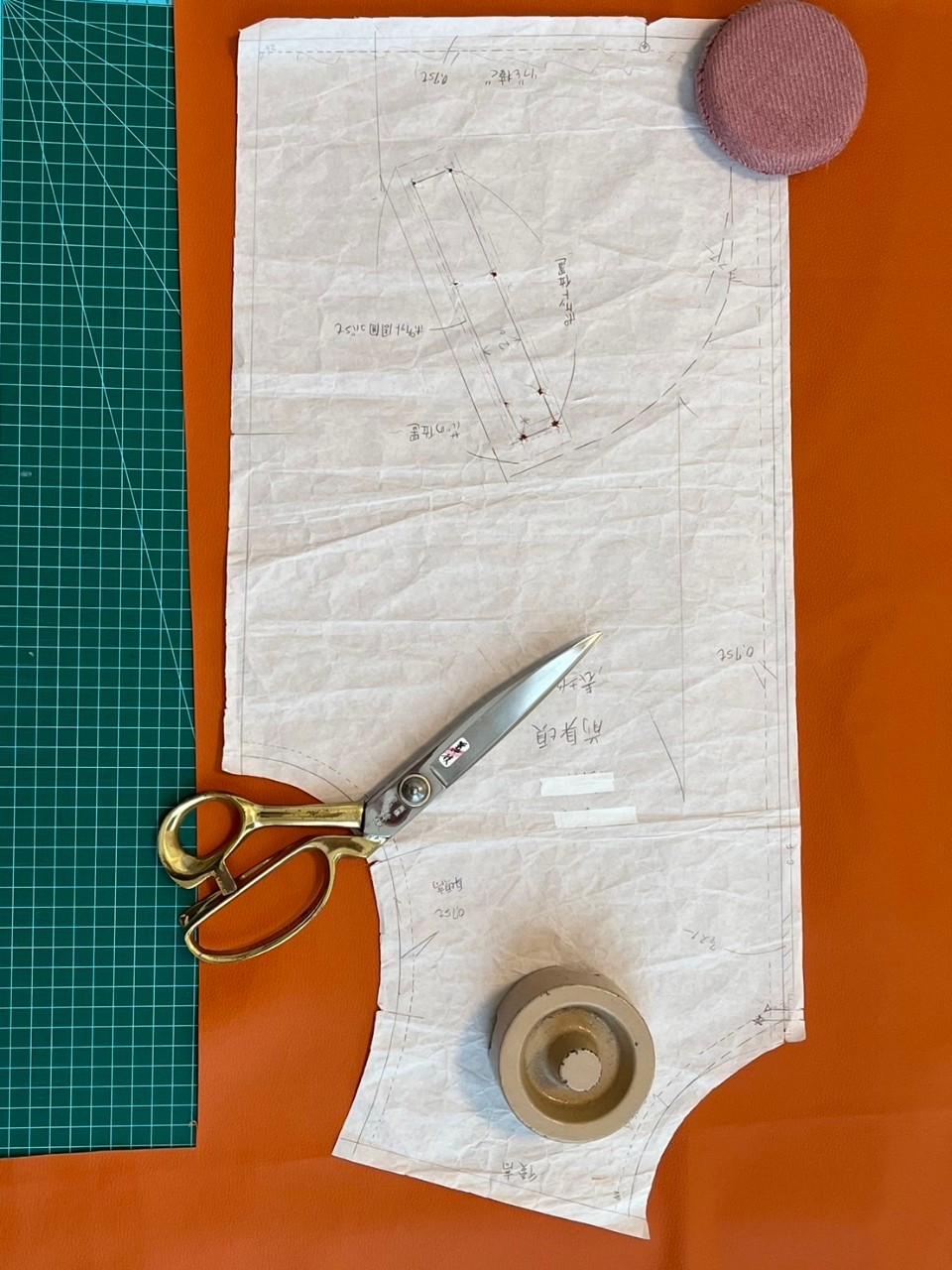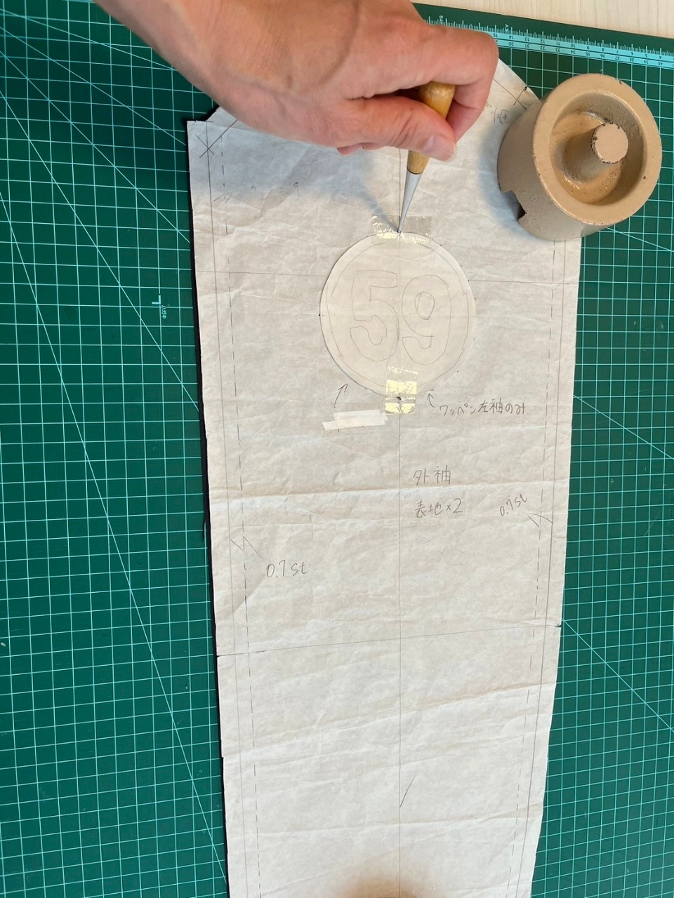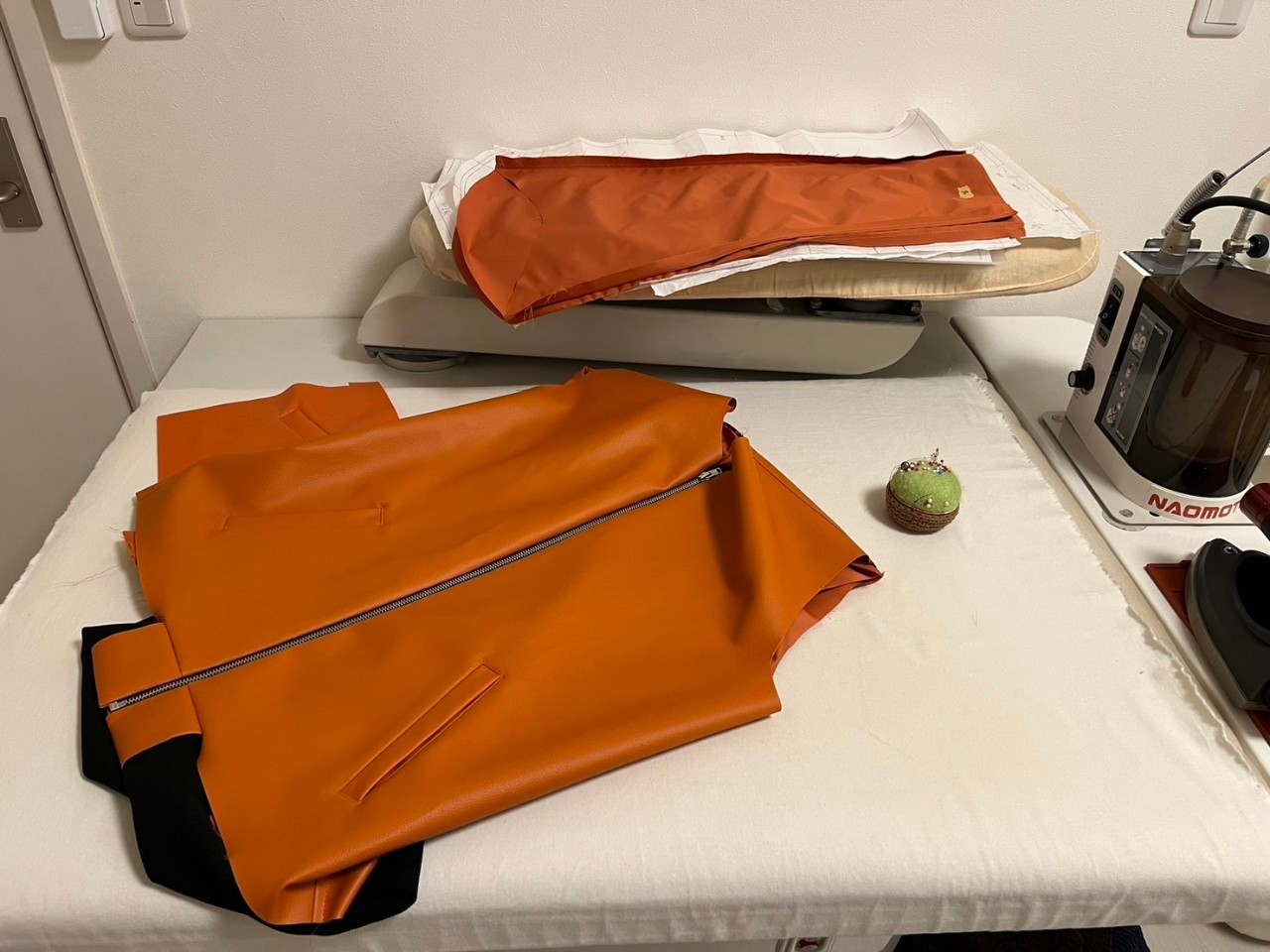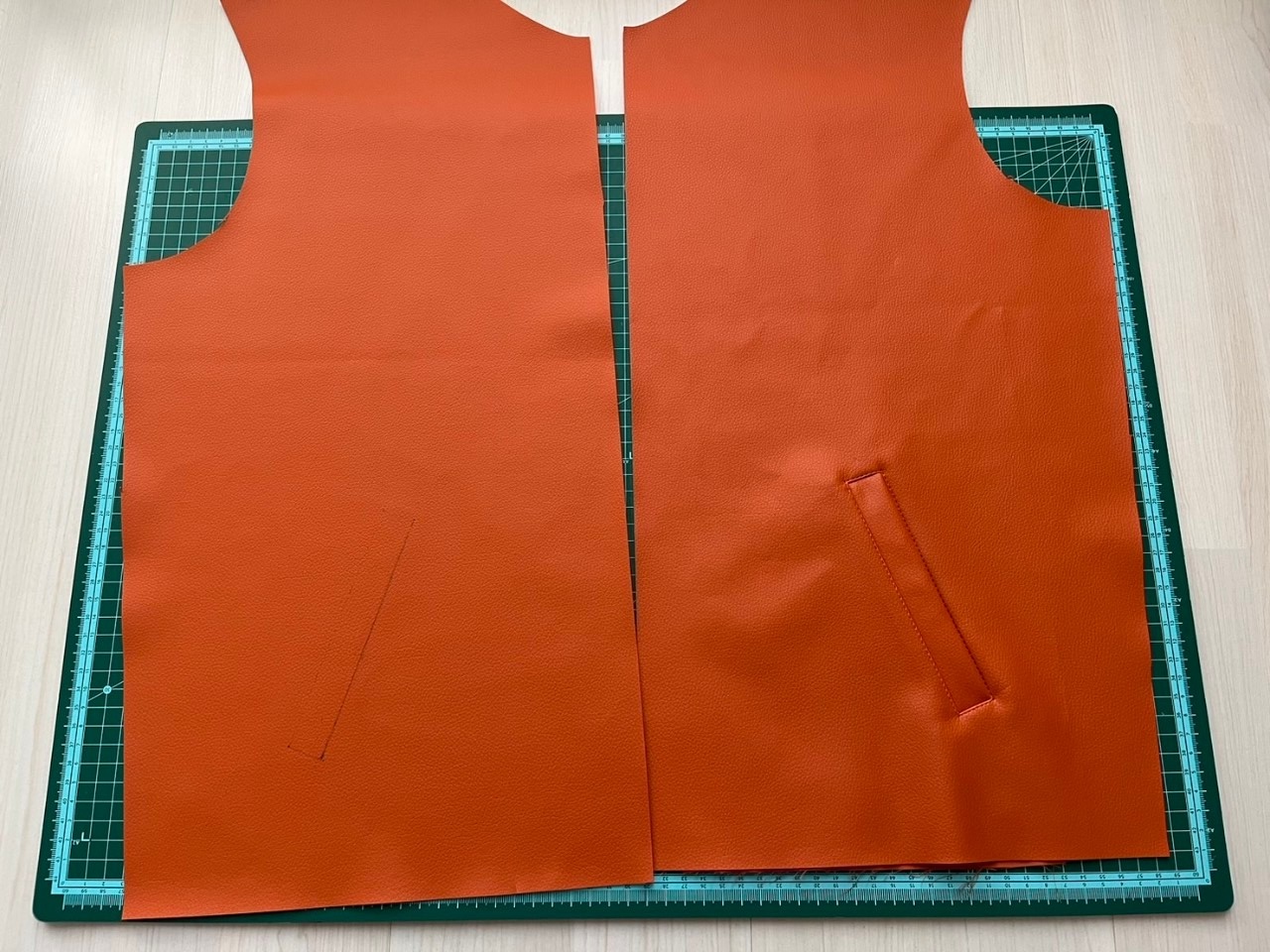 Als nächstes wurde die Platzierung der Taschen sorgfältig entschieden, bevor es mit dem Nähen begann.