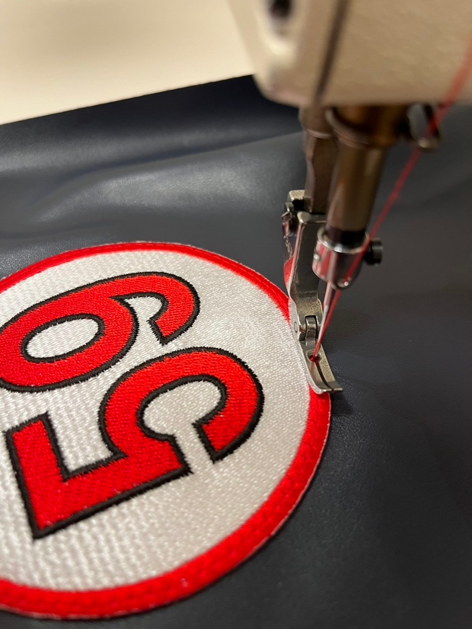 Mit dem Nähen wurde fortgefahren, wobei besonders auf die Position des Abzeichens auf dem Ärmel geachtet werden musste.