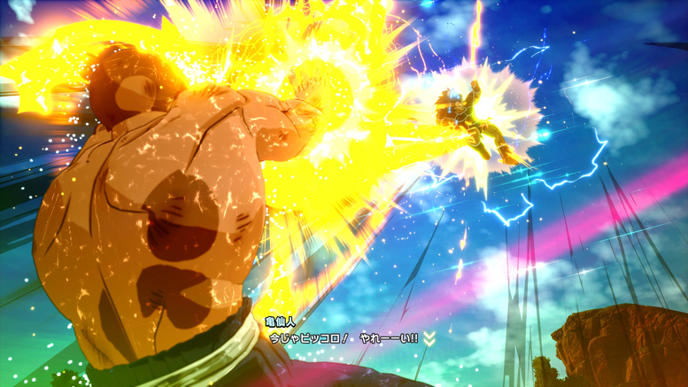 Obwohl er geschwächt ist, gelingt es Raditz , Krillins neuer, in der Entwicklung befindlicher „Kienzan“-Technik auszuweichen, doch dann gelingt es Kamesennin , den außerirdischen Eindringling mit seinem Bankoku Bikkuri Sho (Lightning Flash Surprise) zu fangen! Nachdem Raditz bewegungsunfähig ist, entfesselt Piccolo ein Makankosappo: Special Beam Cannon , die den mächtigen Saiyajin erfolgreich besiegt! In dieser alternativen Version der Ereignisse stirbt Goku jedoch nicht, sodass er nicht auf dem Planet of the Kaio trainiert! Bedeutet das, dass er es ohne all dieses zusätzliche Training mit Vegeta und Nappa aufnehmen muss?!