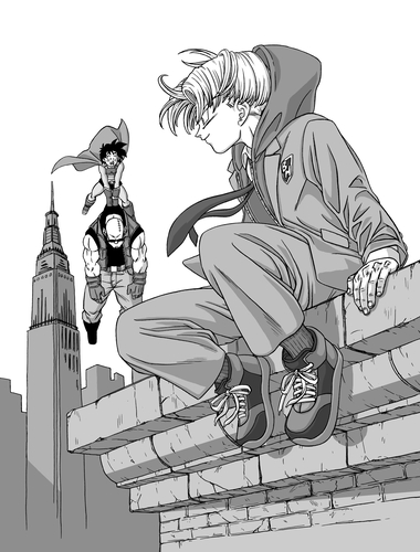 Darüber hinaus enthält die Titelseite eine Illustration von Trunks und Goten direkt von Toyotarou selbst. Die Stars unserer Geschichte haben noch nie besser ausgesehen!