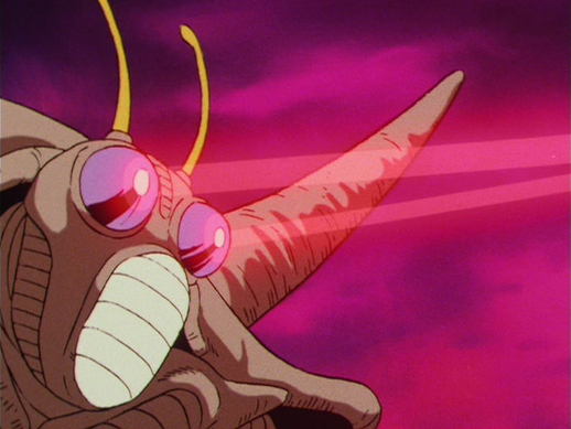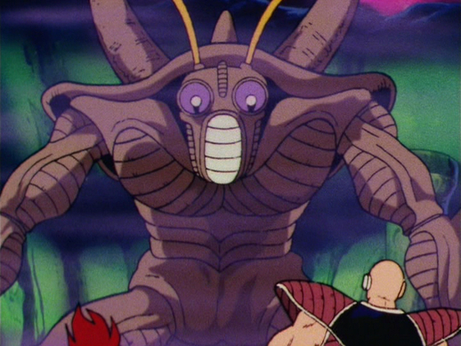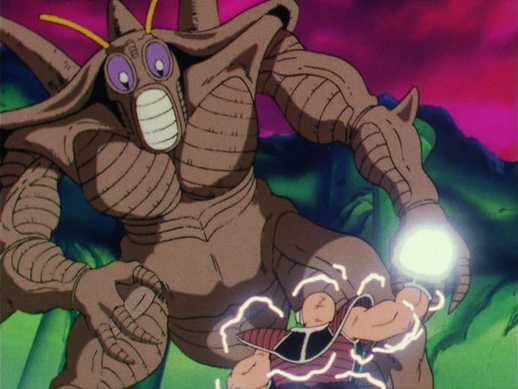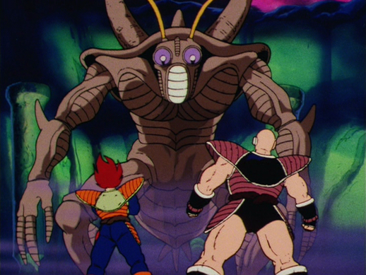 Das Insektoid greift Nappa an, doch der Saiyajin kann seinen flinken Angriffen problemlos ausweichen. Yeddy feuert aus seinen Augen auch Strahlen auf Vegeta ab, denen der Prinz mühelos im Zickzack ausweicht.