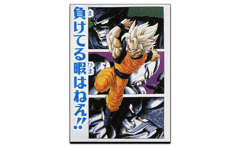 Der diesmal für Dragon Ball gewählte Slogan lautete „Jetzt darf ich nicht verlieren!!“, begleitet von einer beeindruckenden Illustration mit einigen von Gokus bis dahin furchterregendsten Feinden!