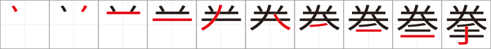 Abgesehen von seiner wörtlichen Bedeutung von "Faust" kann sich dieses Kanji auch auf Kampfkünste mit bloßen Händen beziehen. Als solches wird es oft für Angriffe verwendet, die physisch und nicht mit Energie wie einem Kikoha (Ki Blast) werden. Dieses äußerst vielseitige Kanji kann am Ende einer Vielzahl anderer Wörter verwendet werden, um Angriffsnamen zu erstellen, die wie echte Kampftechniken klingen!