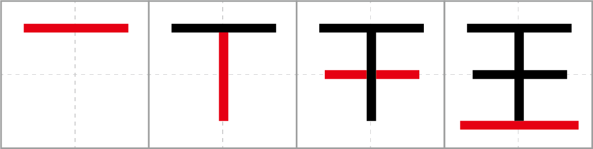 Werfen wir einen Blick auf die Lesungen, Bedeutungen und Strichreihenfolgen.