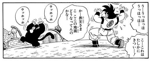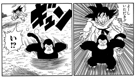 Nach ungefähr vierzig Tagen gewöhnt sich Goku endlich an die Schwerkraft und schafft es, den schnellen Primaten in seine Finger zu bekommen!