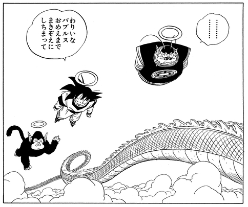 Als Goku zum ersten Mal auf dem Planeten der Kai ankommt, denkt er fälschlicherweise, dass Bubbles der Nord- Kai sei! Er macht sogar eine ordentliche formelle Vorstellung, ahmt dann die Bewegungen des Affen nach und ruft: „Ooka.. Ooka..!!“ als Teil dessen, was er für eine Art Training hält!
