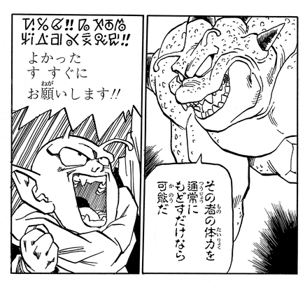 Und sechs Monate später wird Porungas Hilfe erneut benötigt, um die Erinnerung an Majin Buu aus der Erinnerung der normalen Bürger der Erde zu löschen.