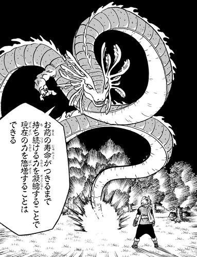 Granolah wollte der stärkste Krieger im Universum werden, aber Toronbo ist nicht in der Lage, die Kraft eines Menschen über sein latentes Potenzial hinaus zu steigern. Indem er Granolahs Lebensspanne verkürzte und seine Lebenskraft konzentrierte, konnte sein Wunsch jedoch erfüllt werden!