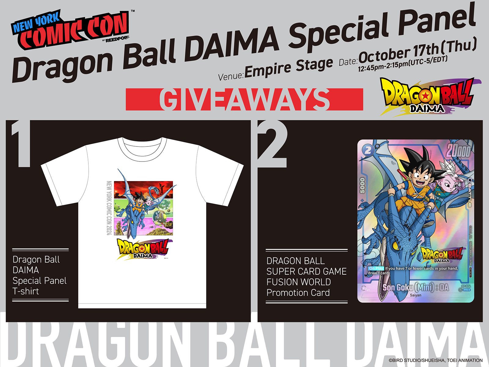 Panel attendees will receive a “Dragon Ball DAIMA” T-shirt as well as a special card from the "Dragon Ball Super Card Game Fusion World!"