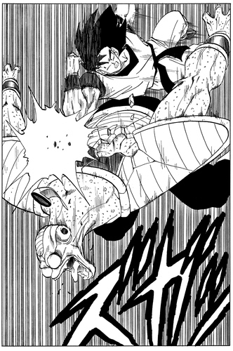 Burter geht davon aus, dass Goku „niemals allein durch Geschwindigkeit gewinnen wird“, und versucht als nächste Strategie, Goku in Bewegung zu halten, ihn zu ermüden und dann zum tödlichen Schlag anzusetzen. Er wird jedoch von Goku mit einem heftigen Schlag niedergestreckt!