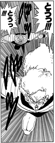 Es gelingt ihm, Vegeta zu finden, ohne entdeckt zu werden. Nachdem er jedoch beim Schere-Stein-Papier-Spiel verloren hat, muss er von der Seitenlinie aus zusehen, wie Guldo und Recoome kämpfen.