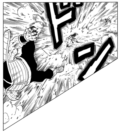 Der niedrige Power Level, der von Jieces Scouter angezeigt wird, lässt ihn glauben, dass Goku eine leichte Beute sein wird, aber stattdessen ist er nicht in der Lage, einen einzigen Angriff auf den Saiyan zu landen und wird allein durch die Kraft von Gokus Ki in die Luft geschleudert!