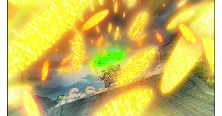 Unter Druck holt Aka einen seiner speziellen, superzerstörerischen Energieangriffe aus, die Wahaha-Welle! Gotenks kann sie abwehren, aber die Explosion prallt dann auf Bulma und die anderen ab. Die Lage scheint schlimm, aber Piccolo kommt den Jungs zu Hilfe und spaltet sie mit einem rechtzeitigen Makankosappo: Special Beam Cannon in zwei Hälften.