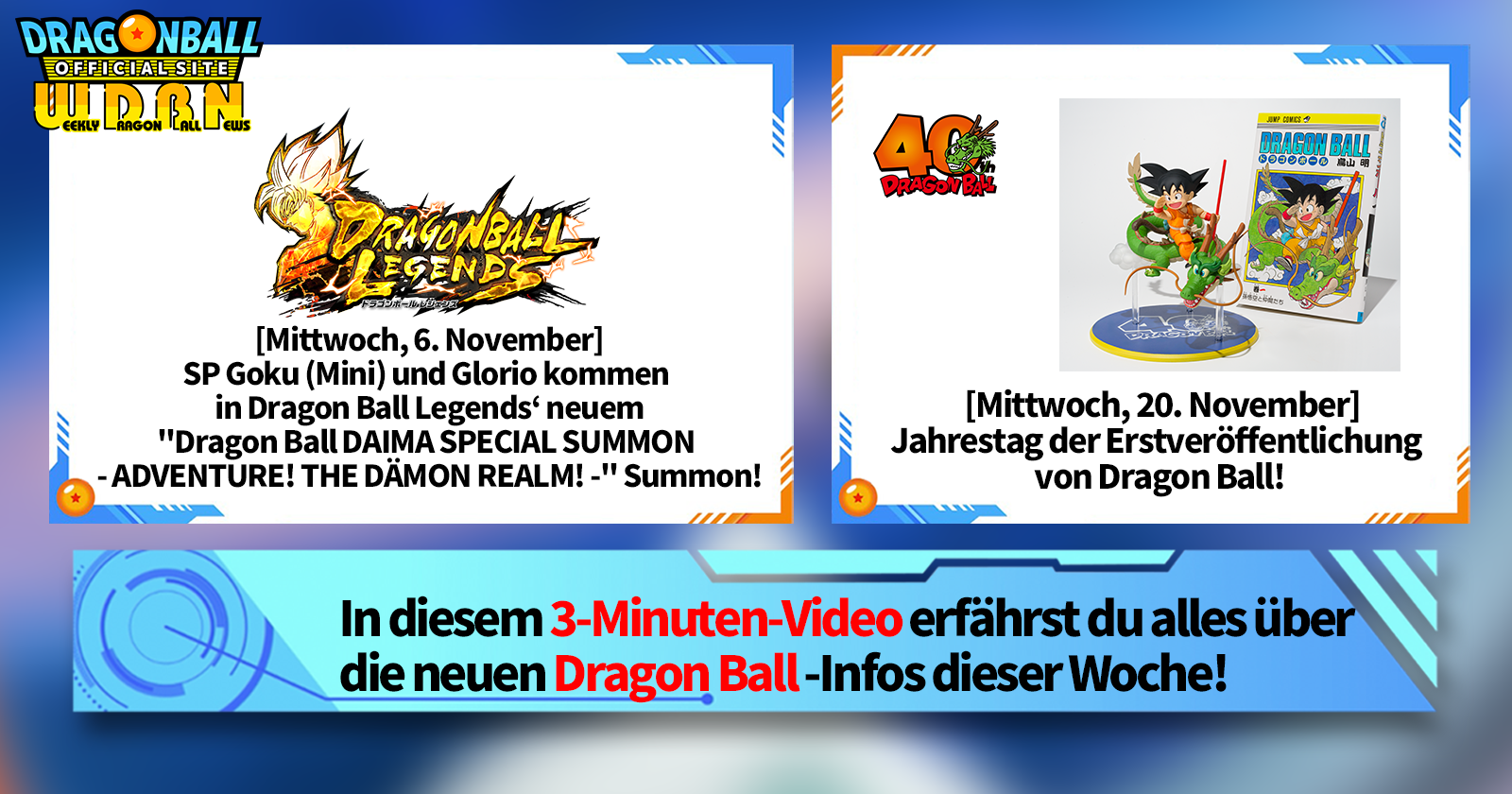 „Weekly Dragon Ball News“ ist eine Videoserie, die jeden Montag (JST) aktualisiert wird, um Ihnen die aktuellsten Nachrichten aus der Welt von Dragon Ball zu präsentieren! Begleiten Sie V Jump -Redakteur Victory Uchida, wenn er über die heißesten Neuigkeiten der letzten Woche berichtet und aktuelle Updates wie neue Produktinformationen und Site-Neuigkeiten für die kommende Woche präsentiert!