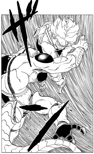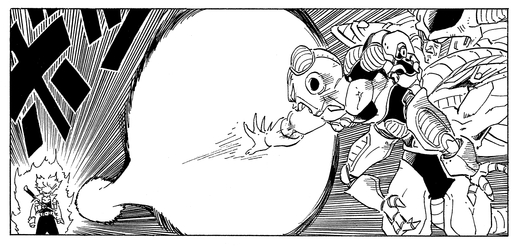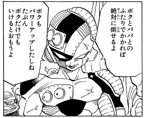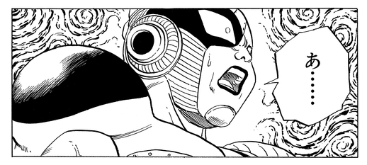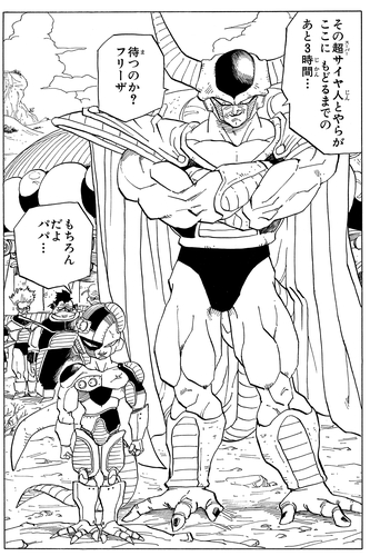 Obwohl er sieht, wie Trunks seine Untergebenen in Sekundenschnelle in Stücke reißt, bleibt Frieza absolut zuversichtlich und sagt: „Die Halbstarken sterben zuerst. Eine alte Lektion, die du auf die harte Tour lernen musst.“ Er ist jedoch schockiert, als Trunks seine Natur als Super Saiyan offenbart.