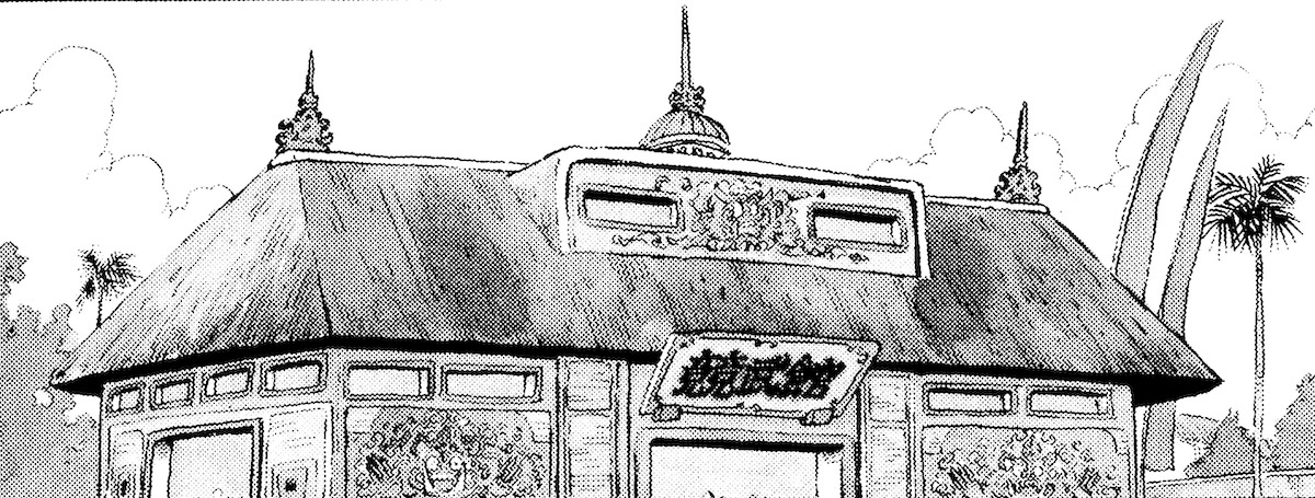 Die Turnierhalle, in der die Tenkaichi Budokai -Vorrunden ausgetragen wurden, hat ein markantes Äußeres, das an asiatische Tempel erinnert.