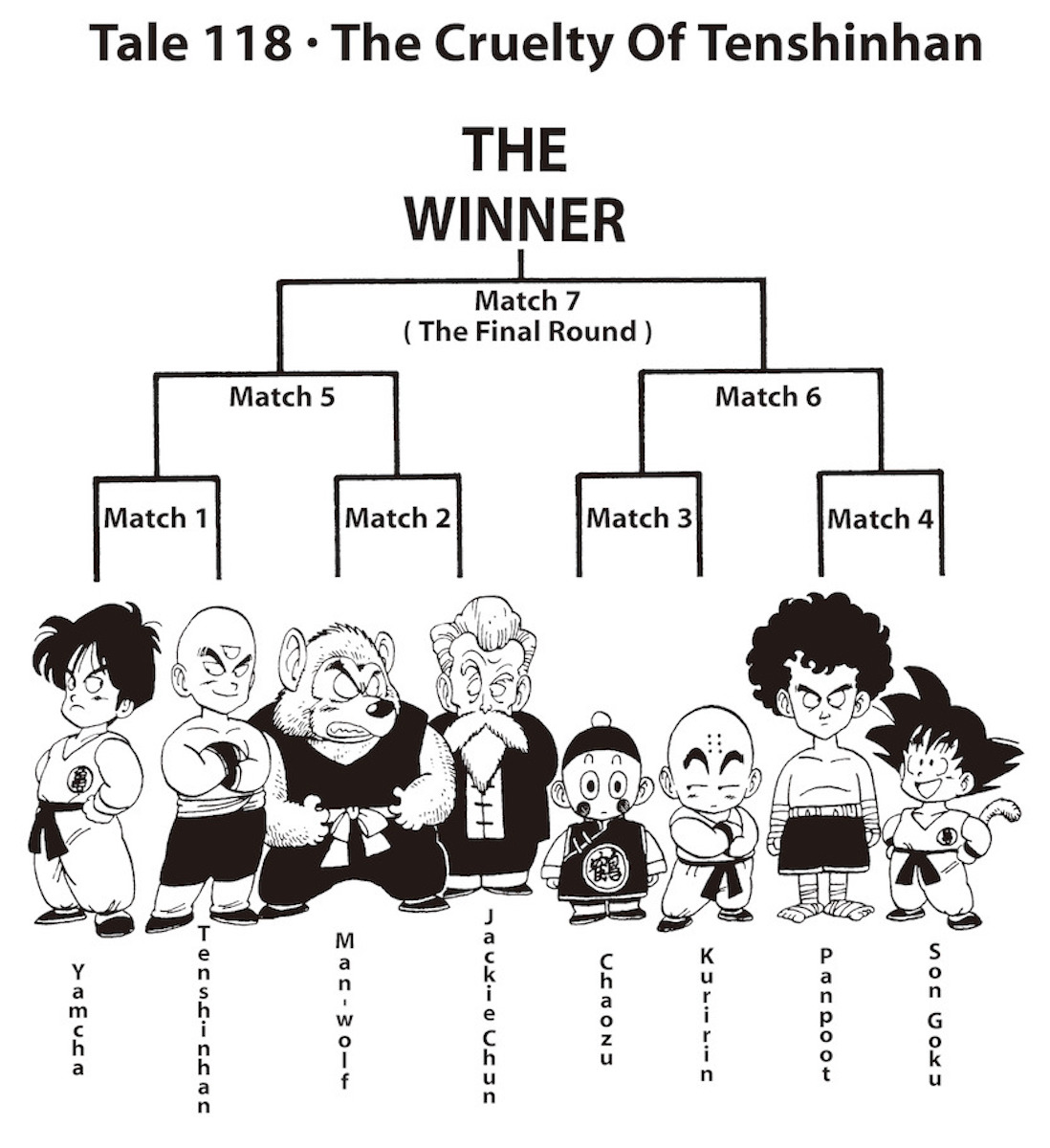 —Als nächstes wollen wir über einige theoretische Regeln für einen Tenkaichi Budokai -Wettkampf sprechen. Das 22. Tenkaichi Budokai, aus dem Tenshinhan als Sieger hervorging, war besonders hart. Es gab kein Zeitlimit für die Qualifikationsrunden oder die sieben Runden des Hauptkampfs. Das bedeutet, dass der Sieger an einem Tag insgesamt mindestens fünf Kämpfe, einschließlich der Vorrunden, bestreiten müsste. Das ist in der Realität einfach nicht möglich, also ist dies ein wirklich verrücktes Turnier.