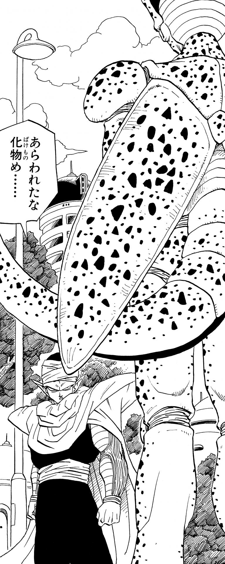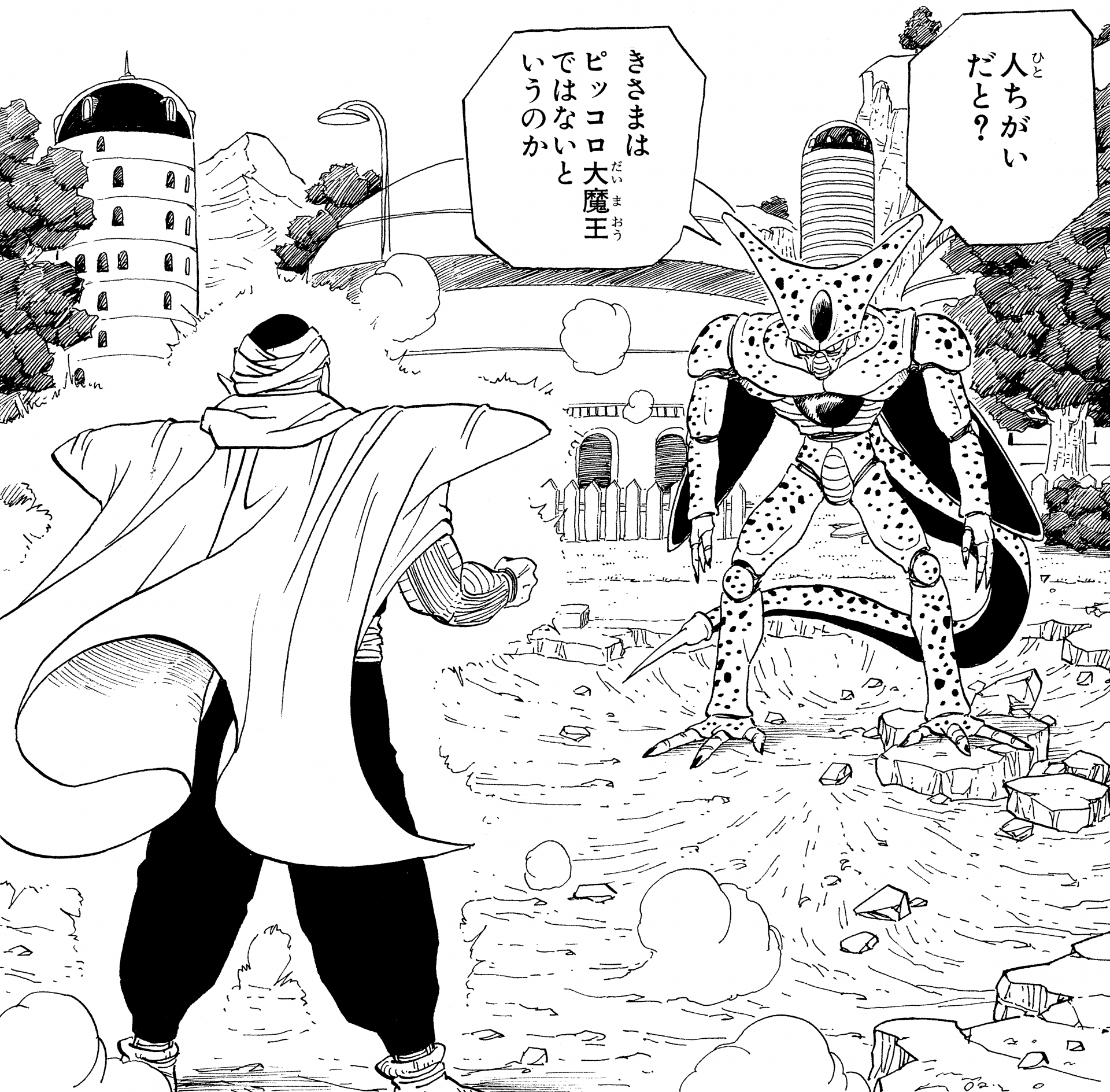 Piccolo, kurz nachdem er sich mit Kami verschmolzen hatte, machte sich auf den Weg in Richtung Ginger Town , um alles zu stoppen, was die Stadt angriff. Kami zögerte zunächst, sich wieder seiner ehemaligen bösen Hälfte anzuschließen, aber nachdem er Cells Anwesenheit gespürt hatte, stimmte er der Fusion zu.