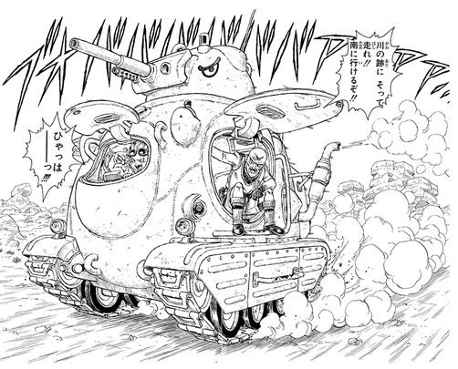 Eingeführt als "Akira Toriyamas Geschenk an das 21. Jahrhundert", Sand Land ist ein Leidenschaftsprojekt von Toriyama, dass er darauf bestand, so unabhängig wie möglich, und abgesehen von ungefähr die Hälfte von der Arbeit zu schaffen! Er hatte die Absicht, etwas Neues zu machen, von dem er dachte, dass es ihm Spaß machen würde, zu zeichnen (auch, wenn es ihn am Ende ein wenig belastete!), Manga mit einem Grizzly-alten Mann und einem Toriyama-Original-Panzer!