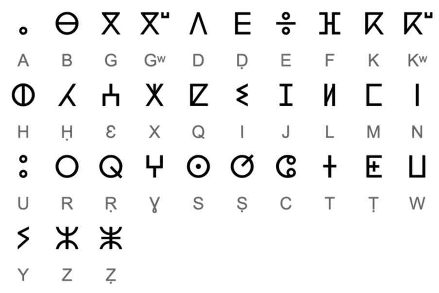 Das Tifinagh-Alphabet. (Quelle: Serg!o,CC BY 2.0 ES, über Wikimedia Commons)